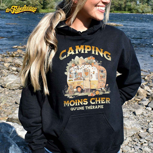 CAMPING moins cher qu'une thérapie (version roulotte) - Coton Ouaté Unisexe à capuche